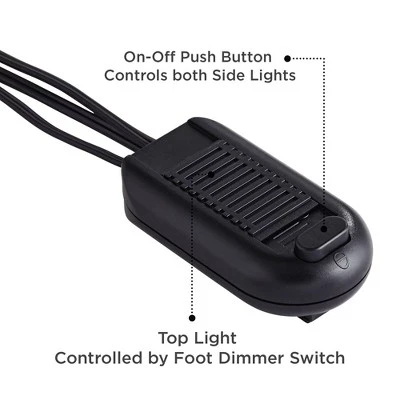 - Foot switch with dimmer on the power cord. Dimmer operates the top light and has an on-off button for side lights.